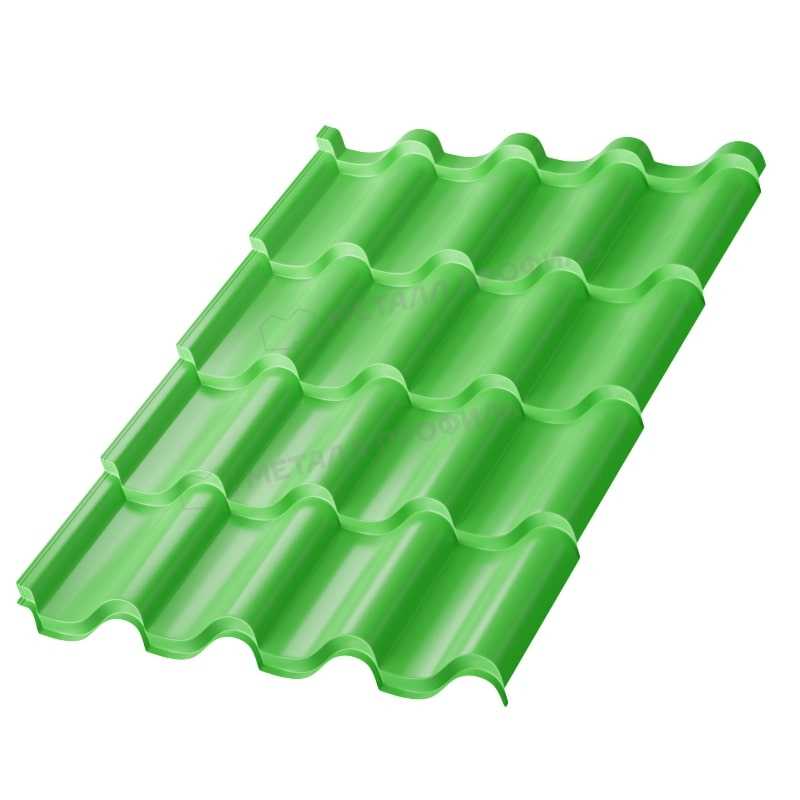 Металлочерепица в желто-зеленом оттенке RAL 6018 представляет собой надежный кровельный материал от компании Металл-Профиль. Модель Монтерроса-S с толщиной 0,5 мм и покрытием NormanMP сочетает эстетику и долговечность, идеально подходя для современных крыш. Этот продукт обеспечивает отличную защиту от погодных условий, сохраняя яркий цвет на долгие годы.