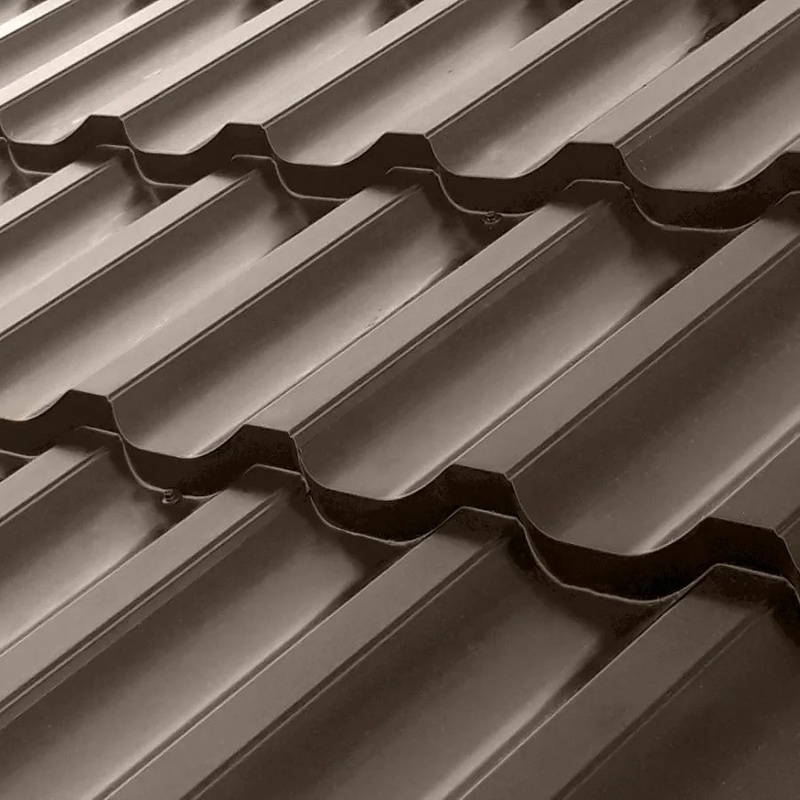 Покрытие VikingMP® — это инновационное матовое решение на основе полиэстера, разработанное для повышения стойкости к коррозии и ультрафиолету. Оно формирует плотный защитный слой, который предотвращает выцветание и механические повреждения. Толщина покрытия оптимальна для баланса между эластичностью и прочностью, обеспечивая срок службы до 30 лет. В цвете RAL 8017 оно имитирует оттенок шоколада, добавляя крыше теплый, естественный вид без блеска, что гармонично вписывается в ландшафт.